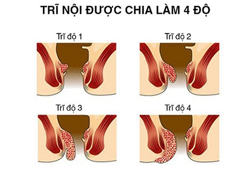 Dựa theo tiến độ của bệnh, trĩ nội được phân thành 4 cấp độ gồm: